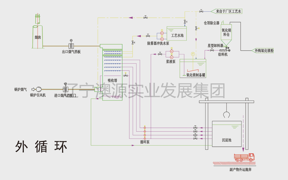 氧化鎂法濕式煙氣脫硫工藝流程圖—外循環